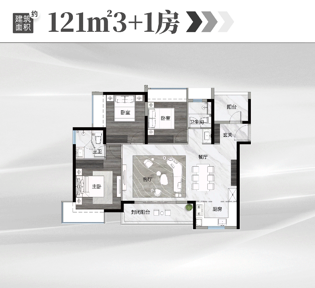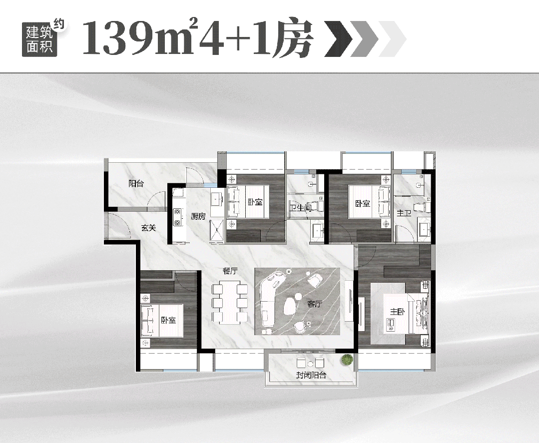 125㎡四空间户型为单边位设